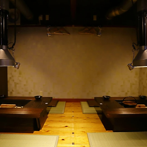全室個室で、プライバシーを大切にしたい方に最適です。全てが囲炉裏の座卓となっているため、伝統的な和の雰囲気を感じながら、おいしい料理を堪能できます。日常の喧騒から離れ落ち着いた雰囲気の中でお楽しみいただけます。