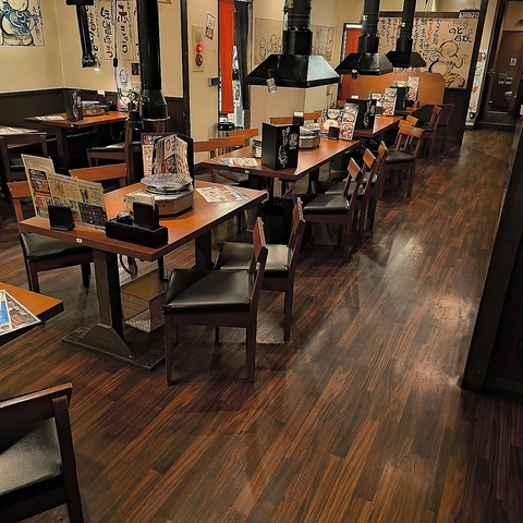 仲間との語らいにぴったりの、テーブル席は開放的で賑やかな雰囲気です。新鮮な肉を焼肉として楽しむ喜びを体感!単品飲み放題メニューも充実しており、お酒のお供に人気の名古屋名物、味噌串カツの濃厚な味わいをお楽しみください。