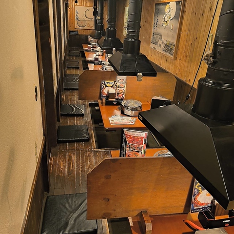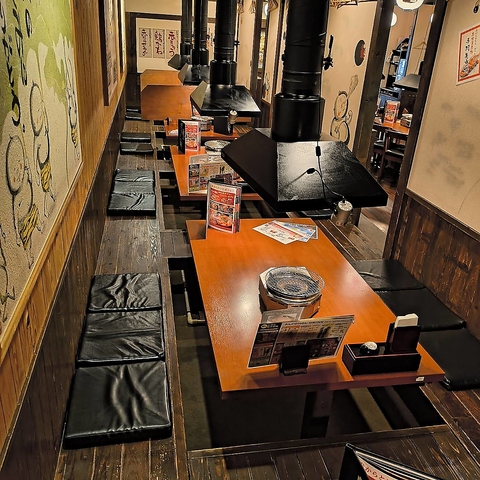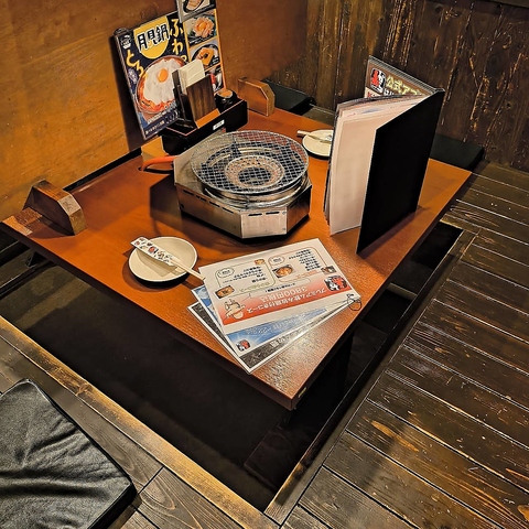 プライベート感のある半個室風の掘りごたつ席で、親密な語らいを。換気設備もしっかり設置されており、焼肉や鍋を心ゆくまで満喫できます。特製ダレの香ばしい香りに包まれながら、特別な夜をお過ごしください!