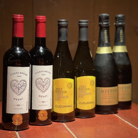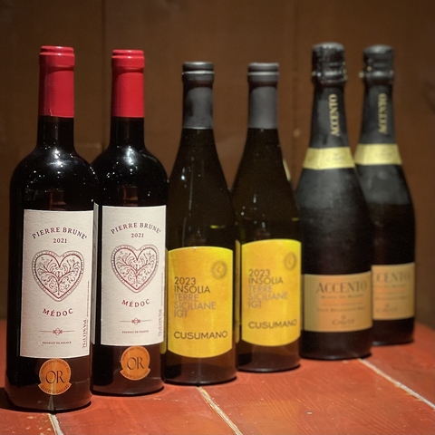 | ワイン | スパークリング、白ワイン、赤ワイン |
