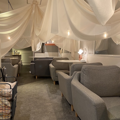 当店は、1階と2階にお席がございます。1階にはカウンター席もございます。2階はテーブル席がメインで、ソファのお席なのでゆったりおくつろぎいただけます。インテリアにもこだわっているのでぜひ雰囲気もお楽しみください!