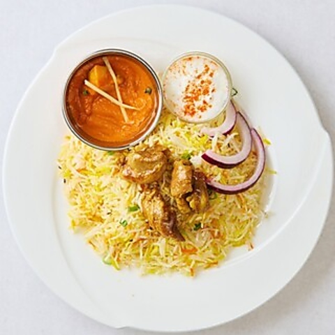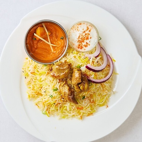 インド米を100%使用したビリヤニは、スパイスと米の香りが絶妙に絡み合い、一口食べるごとに豊かな風味が広がります。具材はチキン・マトン・海老や野菜など幅広くボリュームも満点♪一皿で本格的なインド料理を存分に楽しめる、食べ応え十分で贅沢な一品です◎ぜひご賞味ください!