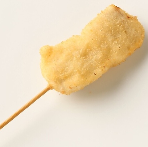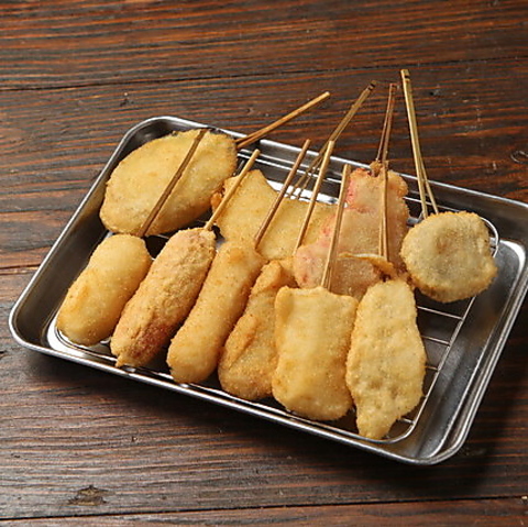 「山芋をブレンドしたこだわりの衣」「独自開発のパン粉」「厳選したオランダ産高級ラードの揚げ油」を組み合わせることで、「外はサクッ♪中はモチッ♪」とした食感の串かつに♪さっぱりとしながらコクのある自家製ソースが、味を引き立てます。