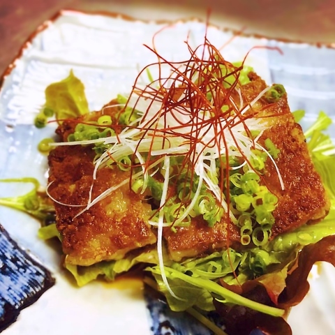 ココでしか食べられない!珍しい当店の自慢料理!新感覚!パリッと触感「あったかい辛子蓮根」辛子蓮根苦手な方もハマる自慢の一品です。