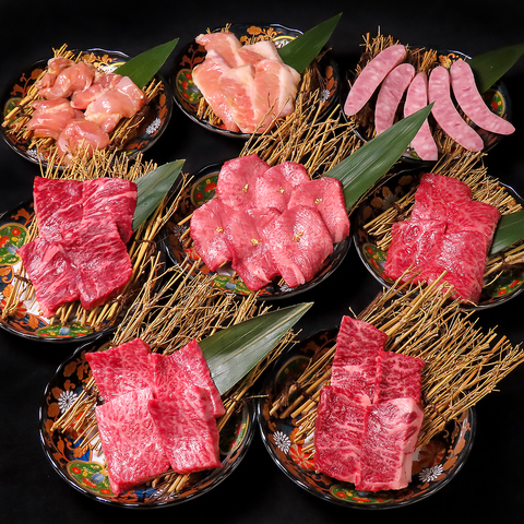 自社精肉店にて黒毛和牛を一頭買いしているのでA-5 ランクのお肉をリーズナブルにお召し上がりいただけます。厳選された黒毛和牛のみ使用したロース、イチボ、カルビ、タン等がお楽しみいただけます。