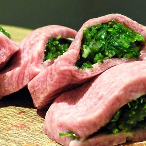 特性の塩だれをネギにしみ込ませタンの中に包み込む最高傑作。京やの【元祖】ネギタンが秋田町に登場。