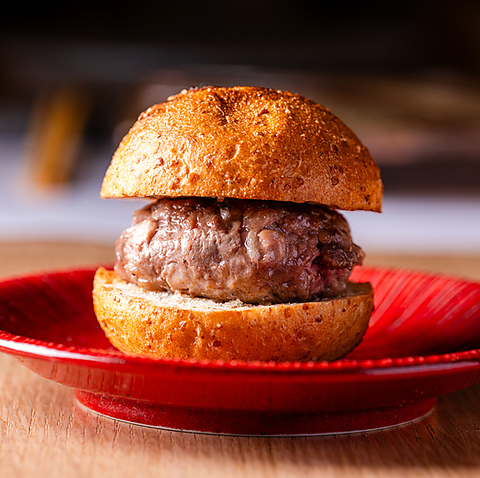 北海道釧路標茶町から仕入れた蝦夷鹿と、山梨県信玄どりの合い挽きミンチ。それを使ったパティを特注のライ麦パンにはさみました。