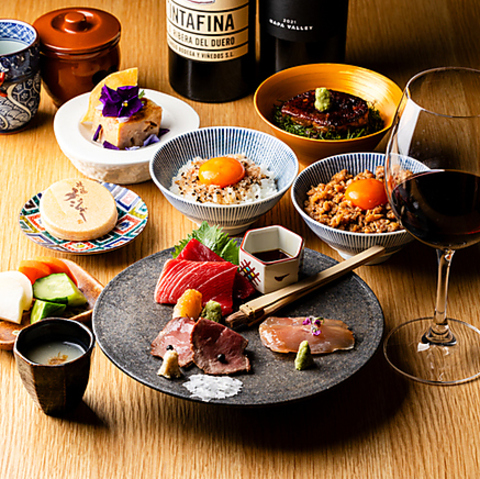 大切な人と過ごしたい、静かな隠れ家。黒を基調に、白木の温もりを随所に散りばめた店内は、都会の喧騒を忘れさせるような落ち着いた空間。洗練されたシックな佇まいの中に、ほっと心が安らぐ柔らかな雰囲気が広がります。特別な人との記念日デートはもちろん、大切なお取引先との接待や、ご家族との会食にも最適。