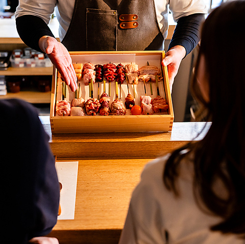 【貸切のご案内】貸切でのご利用、または5名様以上のご予約をご希望の場合は、スムーズなご案内のためお電話にてご連絡いただけますようお願い申し上げます。人数やご予算、ご利用シーンに合わせた柔軟な対応も可能です。どうぞお気軽にご相談くださいませ。当店こだわりの炭火焼き鳥をご堪能頂けるコースでお出迎え。