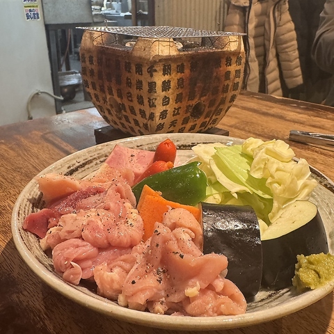 愛媛のブランド鶏「媛っこ地鶏」を七輪で味わえます♪アツアツを自分の好みの焼き加減で食べる事ができるのでより美味しく召し上がっていただけます!