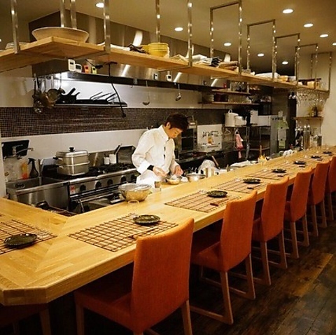 カウンター席では、店主が目の前で調理する姿を楽しむことができ、料理の香りや音を感じながら過ごせます。新鮮な食材を使った料理が、手際よく仕上げられていく様子や、料理が完成するまでの過程を見ることで、食事への期待感が高まります。オープンキッチンは、その料理の過程も楽しんでもらいたいという思いがあり、設置をしております。