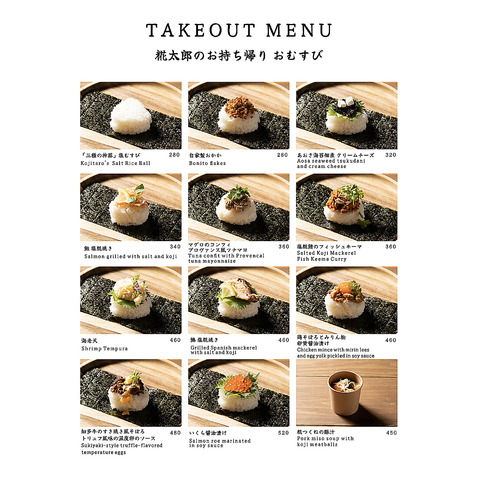 おむすび処 糀太郎では、厳選した食材と伝統の技を活かした「心と身体に優しい」おむすびを、テイクアウトでお楽しみいただけます。