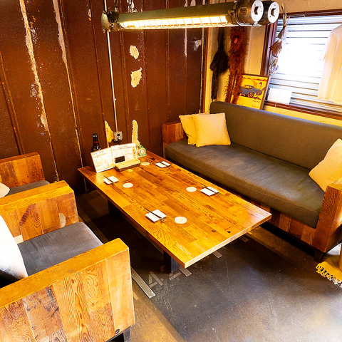 ソファー席は、ゆったりとくつろぎながら過ごせる特別感のあるお席。長時間でも快適に過ごせるため、二次会や親しい友人との集まりに最適です。落ち着いた雰囲気のなかでリラックスでき、プライベートな時間を大切にしたい方におすすめです。