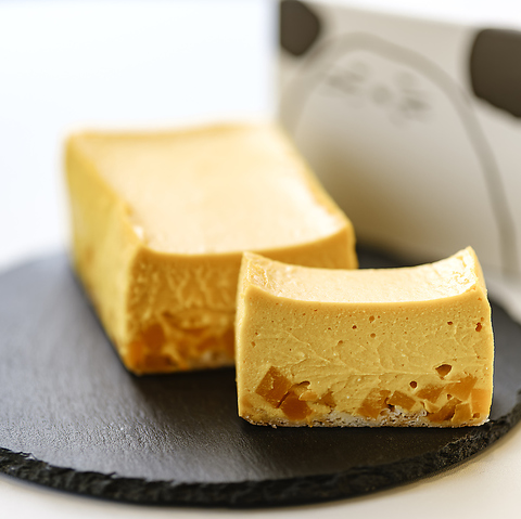 優しいかぼちゃのチーズケーキ生地のなかにごろごろとかぼちゃの果肉をいれてみました。冷蔵商品です。賞味期限は購入日より3日間