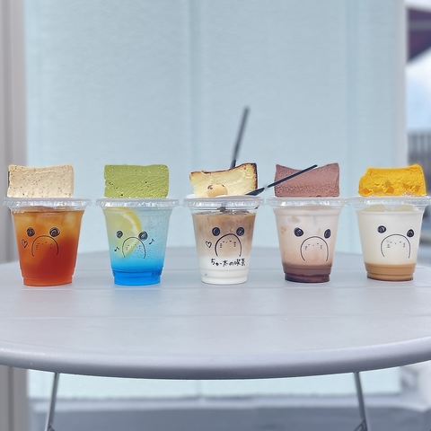 ドリンクとチーズケーキ(ハーフサイズ)がセットになった食べ歩き商品です!