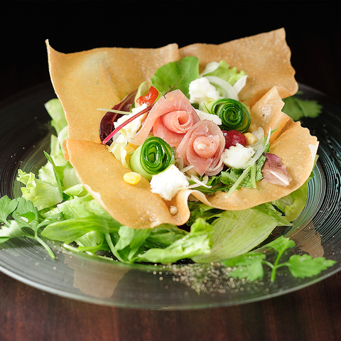 季節の新鮮な焼き野菜は、塩とバターでシンプルに味付けし、素材本来の美味しさを引き出します。さらに、大葉のソースなどのオリジナルソースを添えて、風味を一層引き立てます。165円(税込)で、野菜をたっぷり楽しめる一品です。