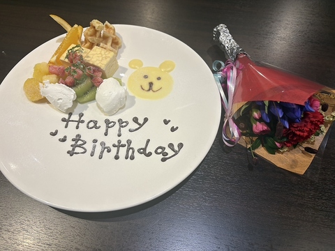 メッセージプレートやお花(550円税込)で、大切な人へのサプライズを演出。特別な日を華やかに彩ります!