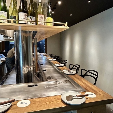 木の温もり溢れる落ち着いた空間は、一日の疲れを癒すのに最適です◎全席カウンターのため、お一人様での仕事帰りのちょい飲みから、親密なデートまで幅広くご利用いただけます♪目の前で繰り広げられる鉄板ライブとともに、美味しい料理とお酒で、肩ひじ張らない心地よい時間をお過ごしください。