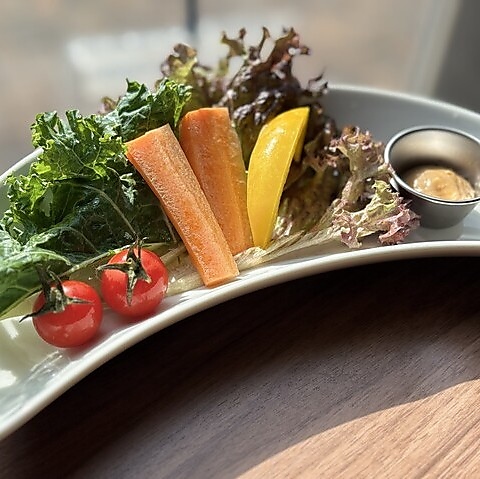 契約農園より毎朝採れたて直送! 四季折々の旬野菜をおつまみ感覚でシャキシャキ。ポリポリ 自家製味噌ディップ一つ付き ハーフ1089円(税込)