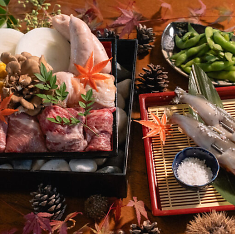 瀬戸の豊かな自然で育った「瀬戸山麓牛」「瀬戸豚」を贅沢に味わえるコースです。旨味たっぷりの肉に加え、清流で育った川魚の串焼きも堪能できます。その他、新鮮な旬の野菜もセットになっており、まさに瀬戸の恵みを味わい尽くす贅沢なプランです。