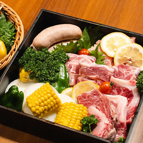 国産肉を存分に楽しみたい方におすすめのプランです。瀬戸地産の「瀬戸豚」や「牛せせり」など、こだわりの国産肉をたっぷりお召し上がりいただけます。肉の旨味を存分に引き出す特製BBQソースで、さらに美味しくお召し上がりください。