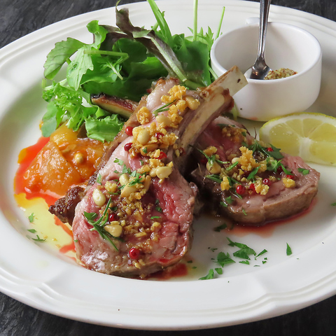 ジューシーな骨付き仔羊を豪快にローストしました。にんにくとハーブの香りが食欲を刺激し、噛むほどに旨みが広がります。肉のワイルドさと繊細な香りが織りなす、当店自慢の一皿です。