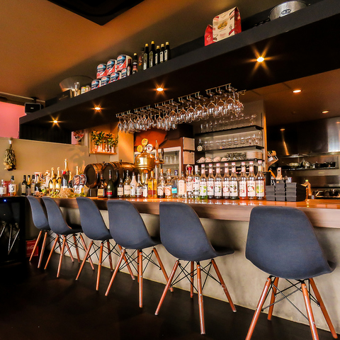 カウンター席もお洒落でグッド♪お料理の出来上がりを見ながらワインを傾けるとより一層愉しめます☆