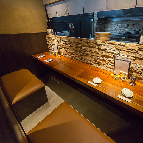 ≪カウンター席:2卓≫調理風景を間近で楽しめるカウンター席は、まさに特等席!お一人様でも気兼ねなく、職人の技を眺めながら、焼きたての串を堪能ください☆