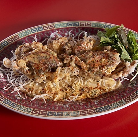 丸ごと揚げたソフトシェルクラブに麻辣クリームをまとわせてサクサクの春雨と楽しむ香りと痺れを楽しむ贅沢な一品。ソフトシェルクラブの旨みを余すところなくお楽しみいただけます。ザクザクした食感も人気ポイントの一つ。ご注文の際には1匹or2匹をお選びいただけます。