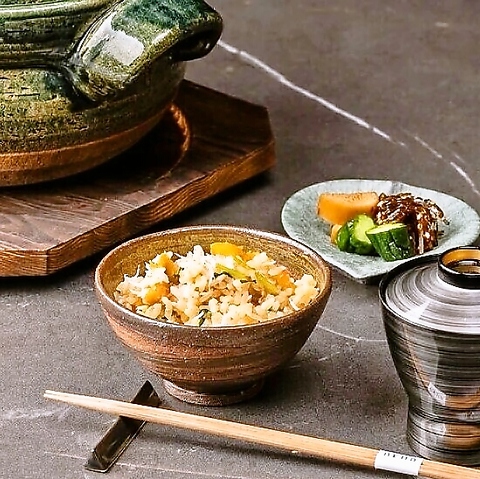 前菜からデザートまで、旬の味覚をカジュアルに楽しめるフルコース。炊きたてで提供する土鍋ごはんも魅力。