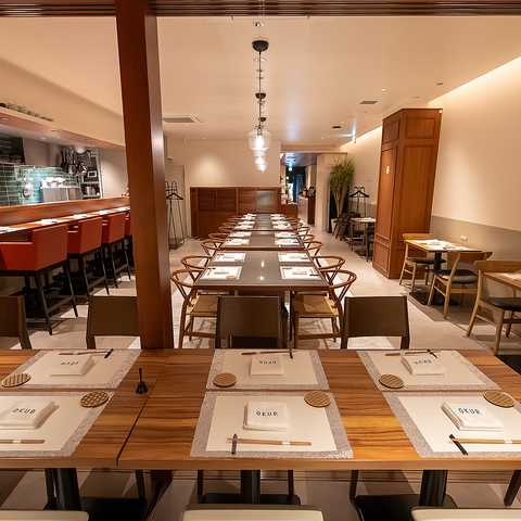 落ち着いた雰囲気の中でお食事を楽しめる広々とした席をご用意しております。カウンター席では、シェフの技を間近で感じながらお楽しみいただけます。また、テーブル席はグループでの利用にも最適で、気軽におしゃべりを楽しむことができます。貸切も可能ですので、特別なイベントやパーティーの際はぜひご相談ください。