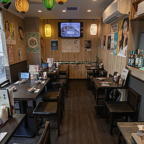 西葛西駅南口から2分、建物の2階にある温かみあふれるお店です。大きな窓ガラスの開放感と、提灯の明るさが店内を賑やかに演出!