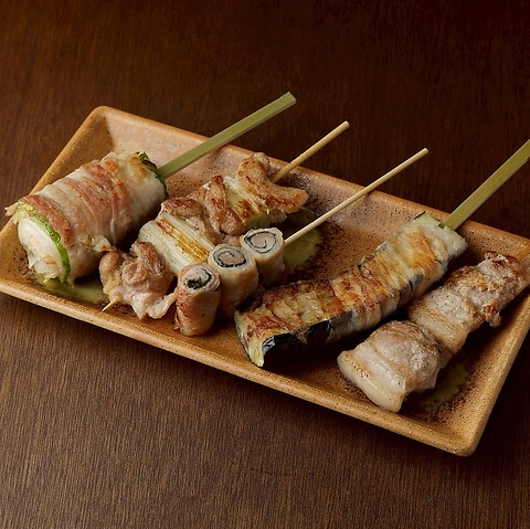 一本一本仕込み、丁寧に焼き上げる絶品の野菜巻き串は必食です!見た目は華やか、かつボリュームも満点★