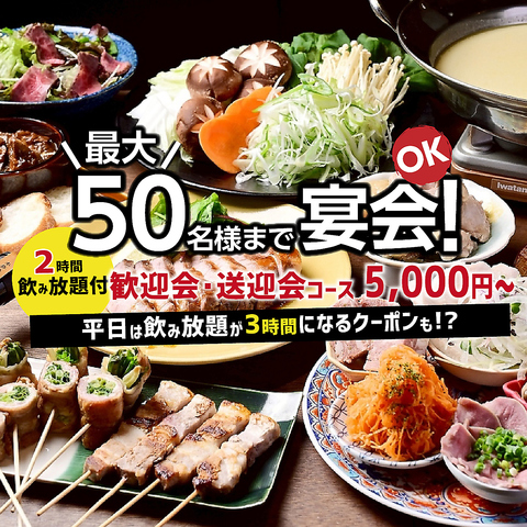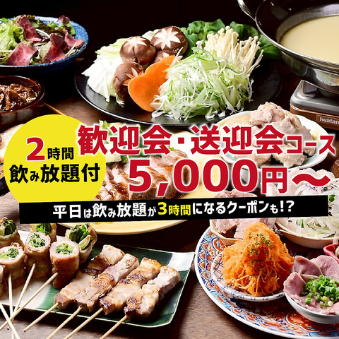 【歓送迎会のご予約受付中】飲み放題付コースは5000円~★日~木の平日は飲み放題が3時間になるクーポンも