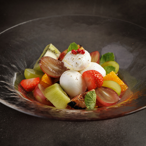 香ばしい鉄板焼きコースの余韻を引き立てるのは、見た目にも華やかなデザート。自家製アイスやガレット、パフェなど、彩り豊かな甘味を一皿ずつ丁寧に仕上げています。甘さを抑えた上品な味わいで、食後の時間を穏やかに締めくくります。
