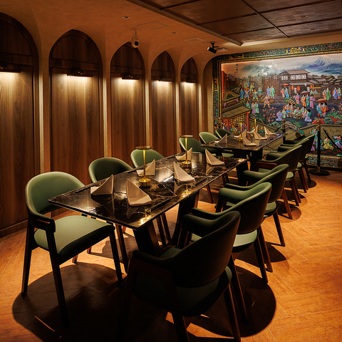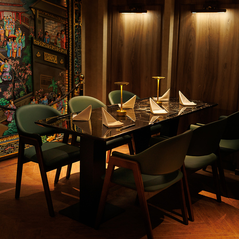 店内奥に設けられた完全個室は、まるで都会の喧騒から離れた小さな隠れ家。少人数でのご利用に最適な完全個室は、余裕あるレイアウトで心地よい距離感を保ちます。柔らかな間接照明が照らす室内は、上質でありながら温もりを感じる雰囲気。大切な商談や記念の食事など、他では味わえない特別な時間をお約束します。