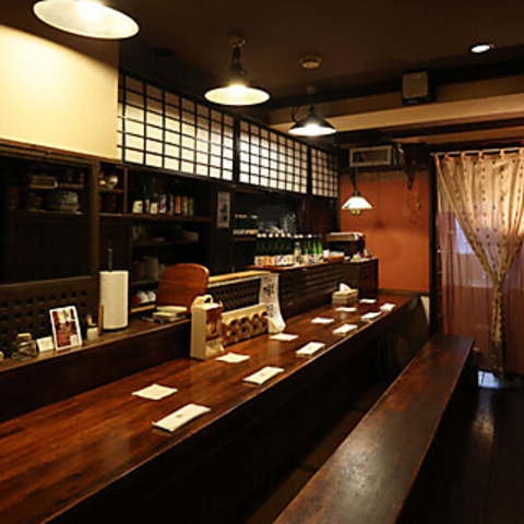 落ち着いた木のぬくもりを感じるカウンター席。お1人様でも友人やお仲間との呑みにもおすすめです。ぜひご利用ください。