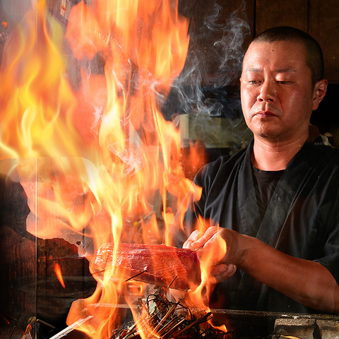 絶対に食べてほしい!ここでしか味わえない『藁焼き鰹の塩たたき』脂がのった生の鰹を藁の炎で豪快に炙る