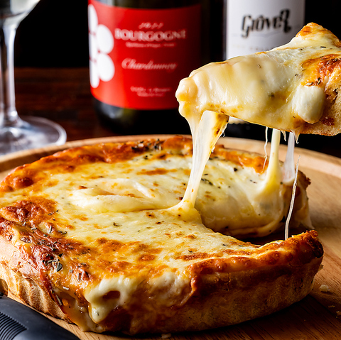 芳醇なチーズが織りなす、贅沢な一皿。外はサクッ、中はとろけるチーズがたっぷり詰まったシカゴピザは、ワインやクラフトビールとのペアリングもおすすめです。