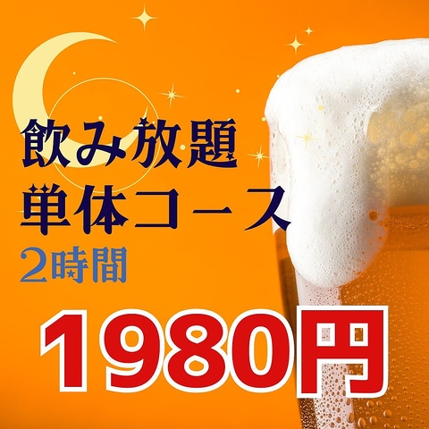 | 飲み放題 | あり :飲み放題単体コースは1980円からご用意! |