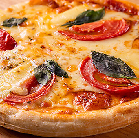 香ばしく焼き上げた生地に、フレッシュトマトソースとモッツァレラチーズ、バジルをのせた王道ピザ。シンプルだからこそ素材の美味しさが際立ちます。