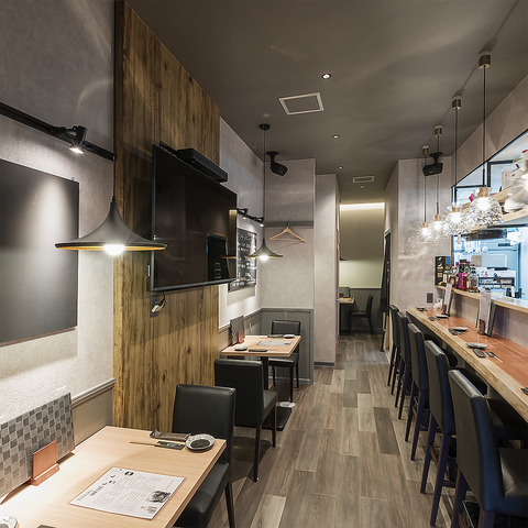 テーブル席は、明るい木のテーブルが温かみを添え、心地よい会話を楽しむのに最適です。2名から6名様まで利用可能で、友人や同僚とのカジュアルな集まりにぴったりのスペースです。落ち着いた配色と照明が、リラックスした雰囲気を演出します。
