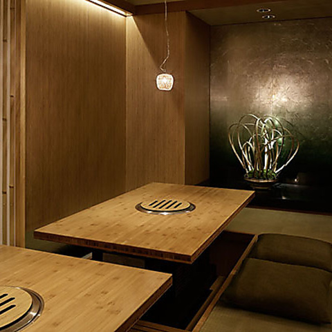 温かい照明に包まれた、プライベートな空間でくつろぎのひとときを。和の情緒あふれる掘りごたつ式の半個室で、大切な方と心ゆくまでお過ごしください。