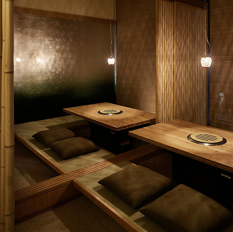 和の情緒あふれる掘りごたつ式の半個室やテーブル席の半個室をご用意しています。大切な方とのお食事や、プライベートな宴会に最適です。周りを気にせず、ゆったりとお過ごしいただけます。