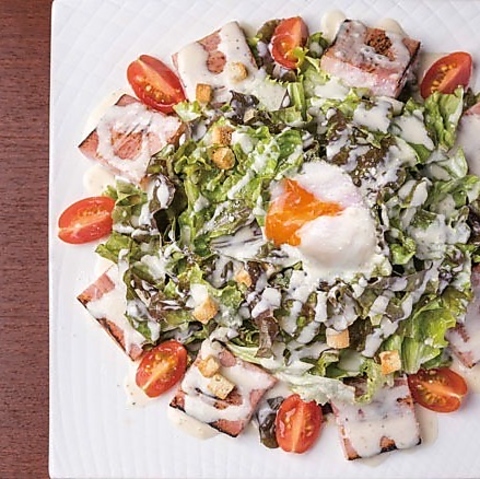 揚げ物をウリにしているからこそ、サラダにもこだわっておりヘルシーにお召し上がりいただけます♪厚切りベーコンのシーザーサラダは見た目も華やかで女性にも人気の逸品!健康にもおなかにも優しい当店のサラダのラインナップをお楽しみください◎