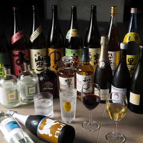 ワインや焼酎、ウイスキーなど多彩なお酒を用意。料理に合うペアリングも楽しめます。