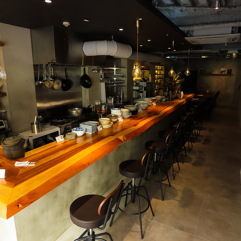 ゆったりとしたカウンター席は、お一人様でも気軽にご利用いただけます。ランチや仕事帰りのちょい飲み、デートでのさくっと利用にもぴったり。目の前で調理の様子を楽しみながら、落ち着いた時間をお過ごしいただけます。