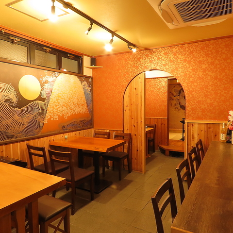 フロアのお席はテーブル席、カウンター席がございます。テーブルは半個室のように仕切りを作ることも可能です。カウンター席も4席あるので少人数でのご来店も大歓迎です。