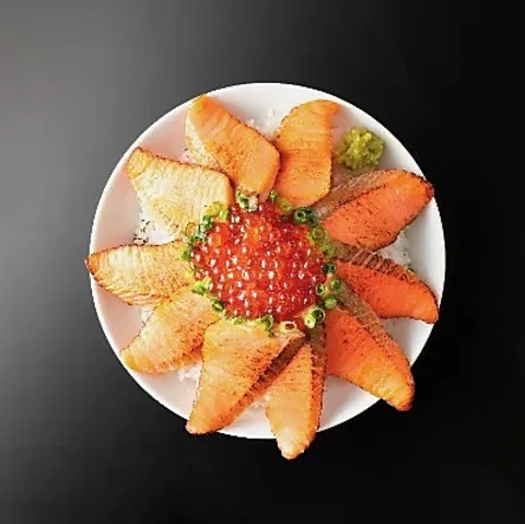 香ばしい炙りサーモンとイクラの絶品丼。サーモン/いくら