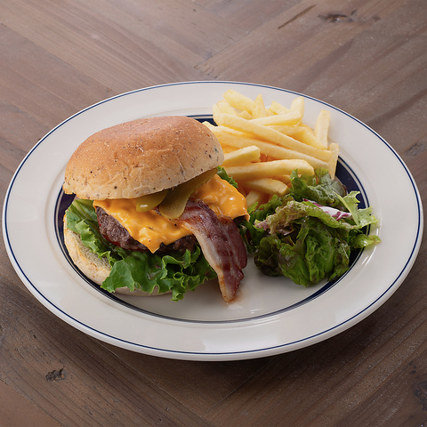 地元で頑張る仲間のお店と力を合わせて生まれた「藤沢ビールハウスバーガー」。「NOLAN」の特製麦芽粕入りバンズに「肉屋喜平」の和牛パティと熟成肉工房ジローのベーコン、そこへホップ味噌の香ばしさを添えて。藤沢ビールと一緒に味わえば、地元の絆が感じられる特別な一品です。